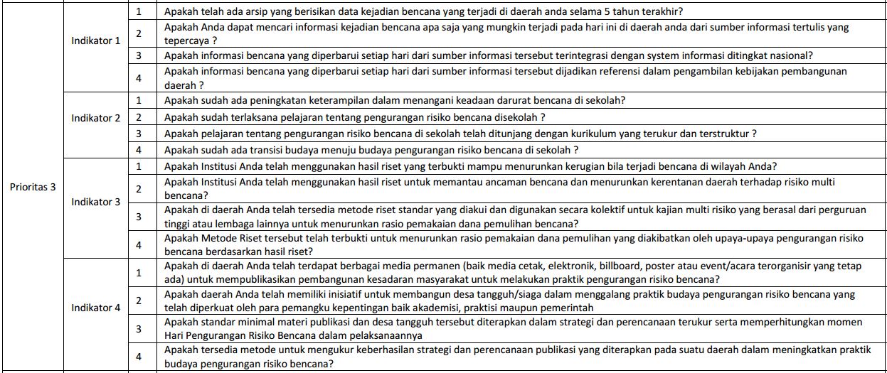 2. tersedianya kajian risiko bencana daerah berdasarkan data bahaya dan kerentanan (Prioritas II),